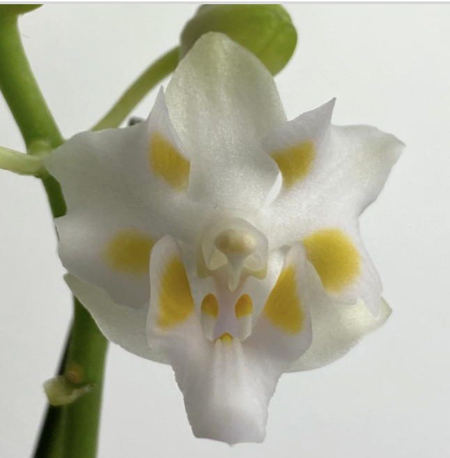 Not Yet Registered 🔮 (Liu's Cute Angel (Jiaho Cherry x lobbii) x pulcherrima var. champorensis alba) | seed grown hybrid, NBS, parent plant flowers shown, cross by Charlia Orchids | Waitlist / Inquire |